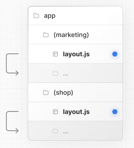在上面的例子中, (marketing) 和 (shop) 都有自己的根布局