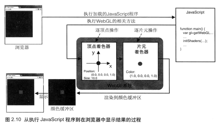 如果你拥有使用 OpenGL 的经验,你也许会觉得漏掉了什么东西:没有交换颜色缓冲区的代码。WebGL 的一个显著特征就是不需要交换颜色缓冲区
