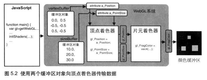 * 创建缓冲区对象,并将多个顶点的数据保存在缓冲区中,然后将缓冲区传给顶点着色器
