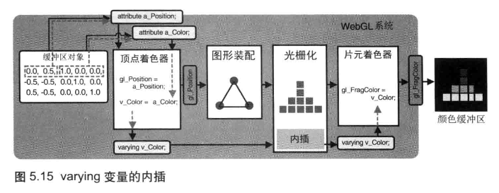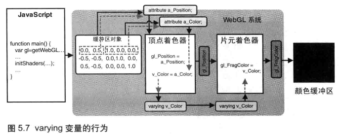 可以使用一种新的 varying 变量向片元着色器中传入数据。varying 变量的作用是从顶点着色器向片元着色器传输数据(详见)