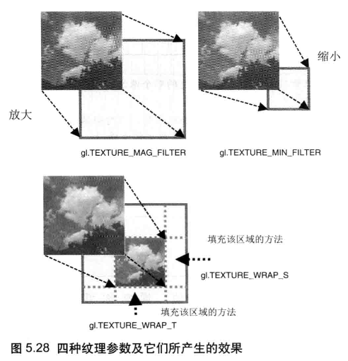 配置纹理对象的参数,以此来设置纹理图像映射到图形上的具体方式:如何根据纹理坐标获取纹素颜色、按哪种方式重复填充纹理等