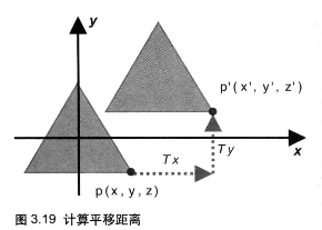 这个矩阵就是变换矩阵(transformation matrix),因为它将右侧的矢量 (x, y, z) “变换”为了左侧的矢量 (x’, y’, z’)。这个变换矩阵进行的变换是一次平移,所以也称为平移矩阵(translation matrix)