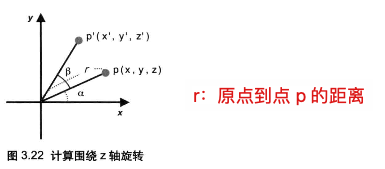 假设将点 p(x, y, z) 沿 Z 轴旋转 角度之后变为了 p’(x’, y’, z’)