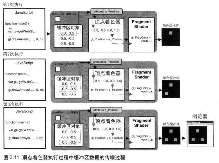 gl.drawArrays (gl.POINTS, 0, n) // n 是 3
